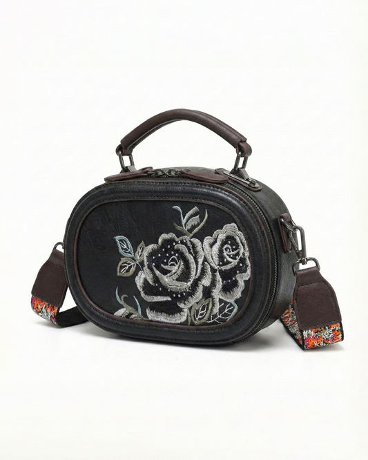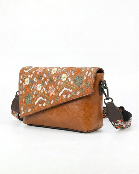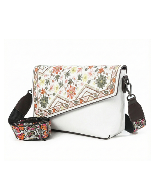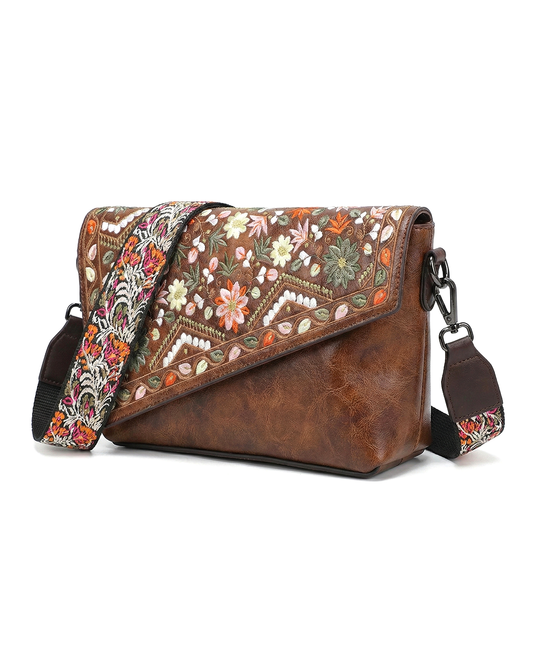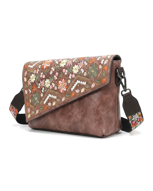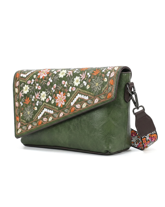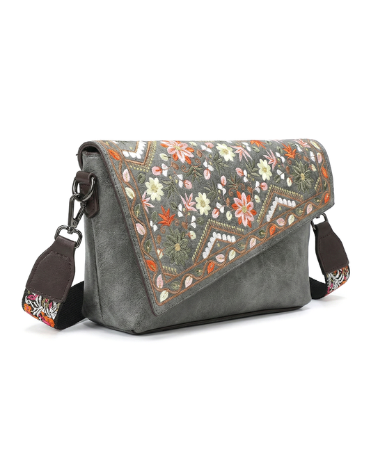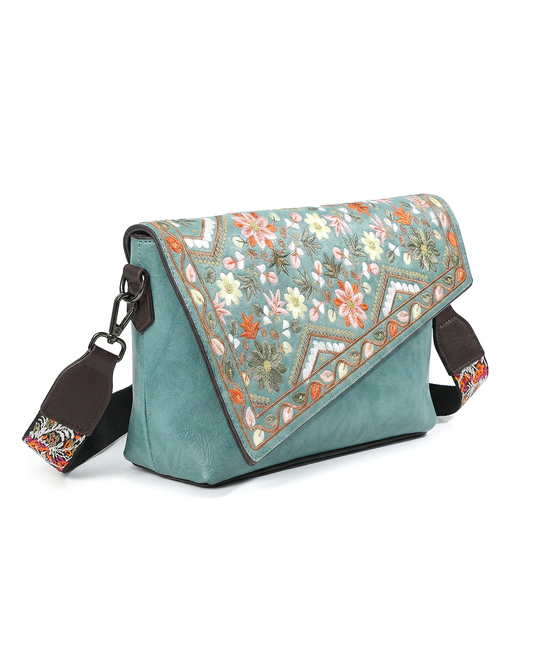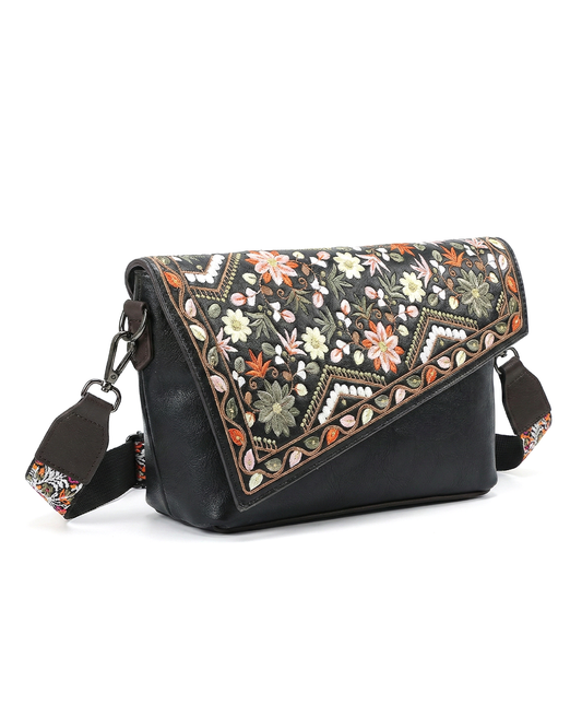 Vintage Floral Embroidered Envelope Crossbody Bag - Asymmetrical Flap