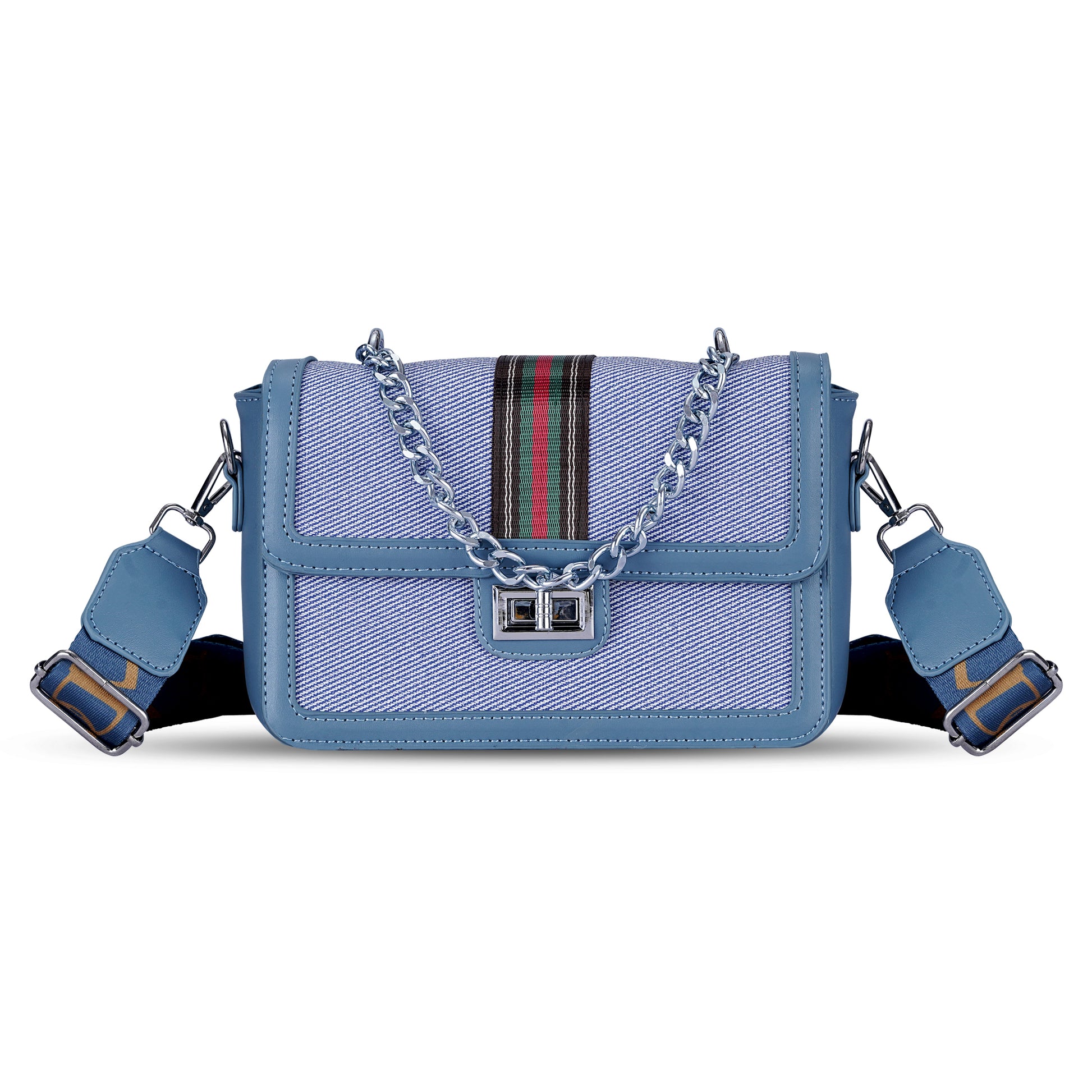 Vibrant blue colourblocked sling bag for stylish looks.