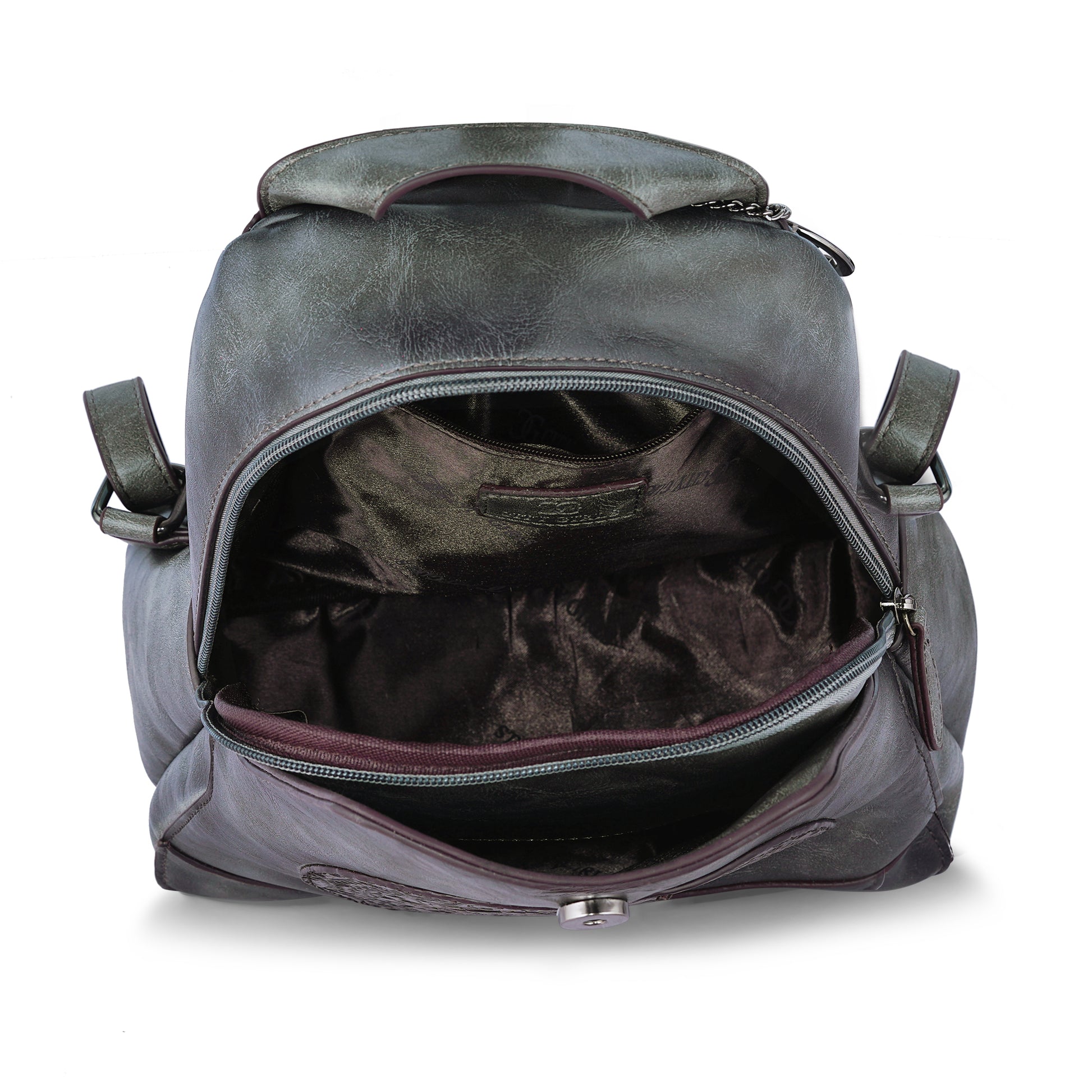 Chic grey antique backpack, crafted for comfort and elegance.